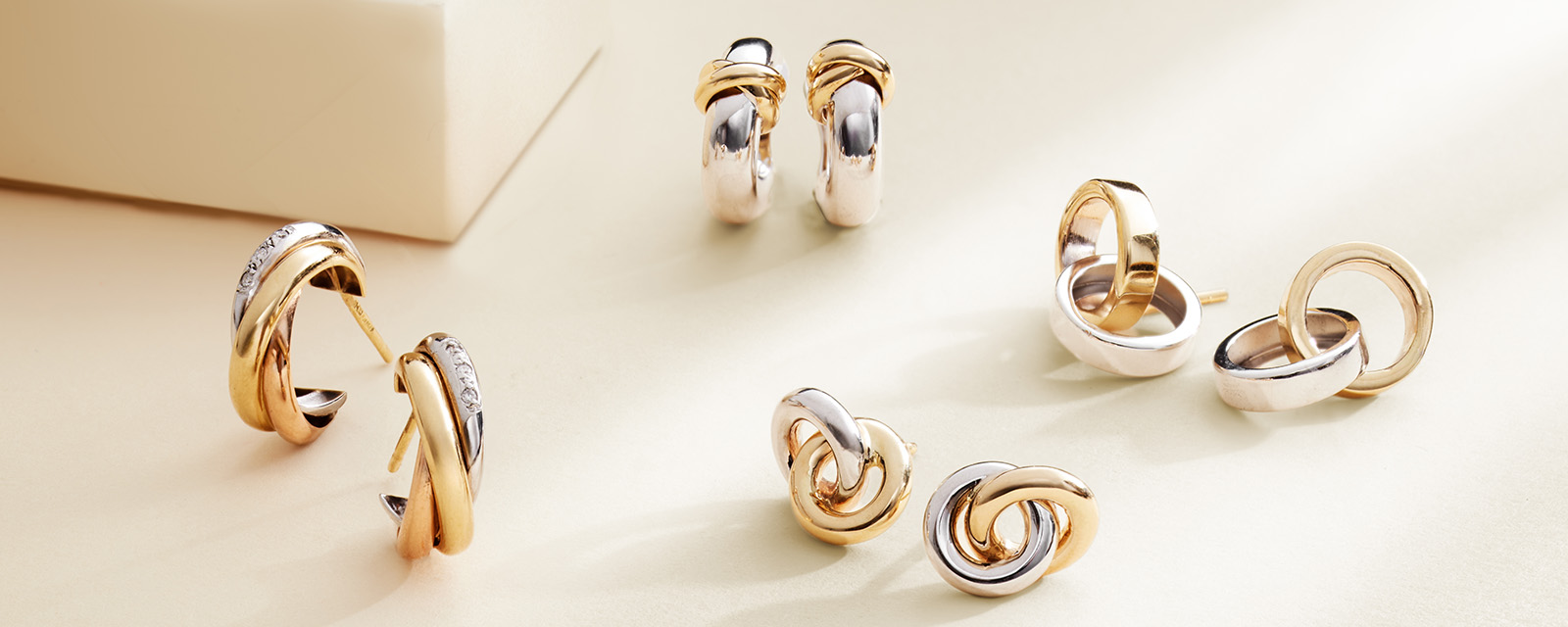 Inspireras av örhängen i mixade metaller. Upptäck butikens utbud av örhängen designade med två- och trefärgat guld i flertalet utföranden.