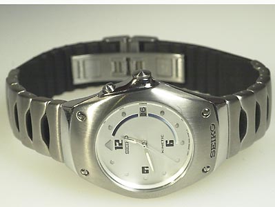 SEIKO, Kinetic, men´s wristwatch, steel, hardlex crystal, date, integrated bracelet steel/rubber, folding clasp, mint, case.