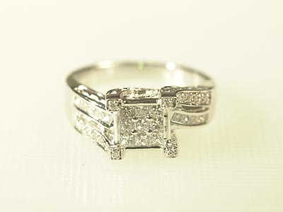 RING, 18K white gold princess-cut diamonds and brilliant-cut diamonds TW-W/VS tot 0,85ct ringsize 17mm 6,9g
