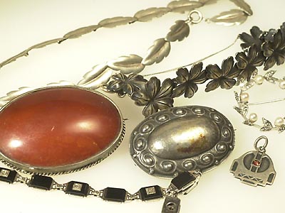 VAR PCS OF JEWELRY in silver; 2 bracelet, 3 brooches, 1 necklace and 1 pendant with var stones