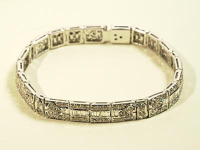 BRACELET, 18K white gold with brilliant-cut diamonds and baugetter 6,42 ctv, approx CR- TCape/SI,, weight 31,1 g, length 18,5 cm