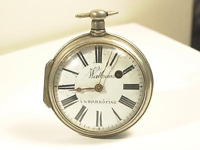 VERGE, "Wallerius" Norrköping, silver, damaged dial approx 1850.