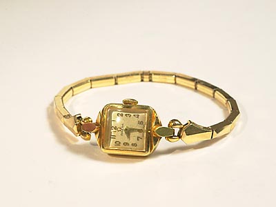 OMEGA, ladie´s wristwatch, cal 244, serial no. 14423577, Ref no. 3955, case no. 11358977, 14K gold, manual wind, plastic crystal, approx 1955, metalbracelet not original.