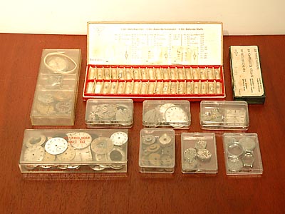 DIV. RESERVDELAR, såsom, 1 kartong balansaxlar från DCN systemet, reglerbrickor till balanser (vikter), skrotade movement, boetter and urtavlor.