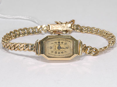 Ladie´s wristwatch, Herba 14K manual wind, dial and crystal damaged with doublélänk
