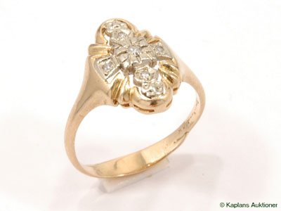 RING, 14K gold, 5 pcs of 8-cut diamond, approx 0,15 ctv, ringsize 17 3/4, weight 3,5 g