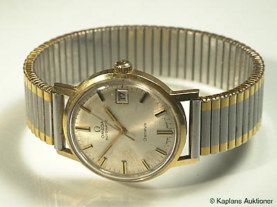 OMEGA, Genève, Cal 565, serial no. 31907938, Ref no. 166 070, men´s wristwatch, 18K gold, self-wind, plastic crystal, date, approx 1969, metalbracelet not original.