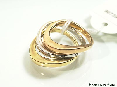 3 rings vg/ gg/rg, 1 m. dia approx 3x0,01ct 18K. weight 11,5g