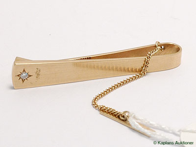 1 Slipsklämma with dia approx 1x0,04ct 18K. weight 9,5g