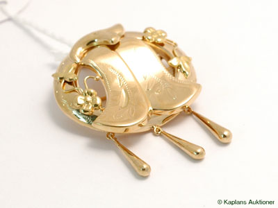 Brooch, Pendant with small skönhetsfel, Engraved, 18K 7,9g