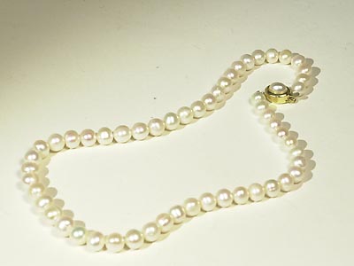 PEARLNECKLACE cultured fresh-waterpearls, gilt clasp with imitation pearl, length 40 cm.