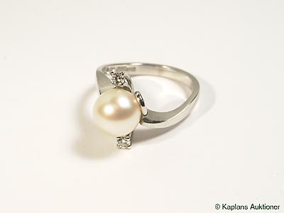 RING, 18K white gold with cultured pearl and 2 brilliant-cut diamonds 0,10 ct weight 4,1 g, ringsize 16