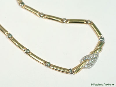 1 necklace with white stones vg/gg, approx 42cm, 18K. weight 14,6g