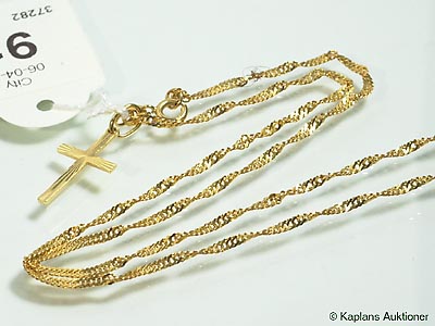 1 chain twined approx 48cm, 1 pendant/cross 18K. weight 4,8g