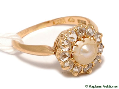 Ring, 18K with damaged pearl and gammelslipade diamonds Ø151/4 2,7g