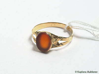 1 ring with red stone (bucklig), stl: 20, 14K. weight 2,8g