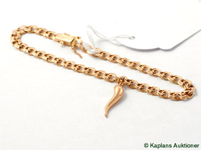 Bracelet, Bismarck 19cm with en charm, safety-chain by, 18K 8,2g