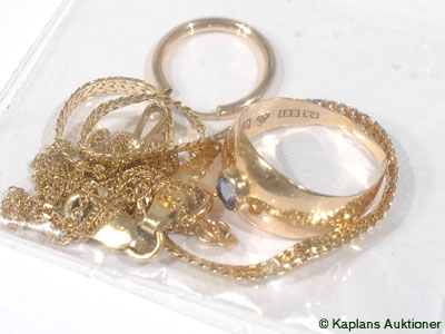 Lot of Gold, 18K Necklace, Armlänk, Stenring, Earring, 5,7g