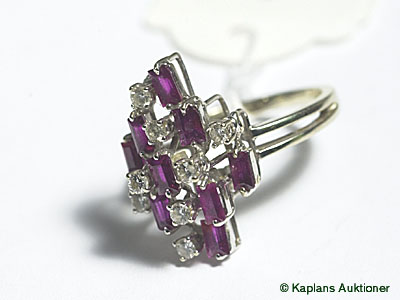 1 ring vg with red stones & dia approx 8x0,03ct, stl: 16 ,5, 18K. weight 5,5g
