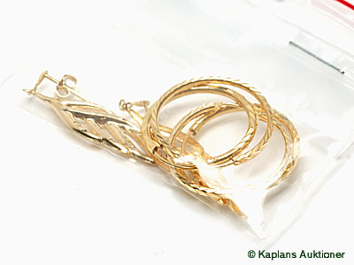 6 Earrings, (1 snurrebuss missing) 18K 3,5gr