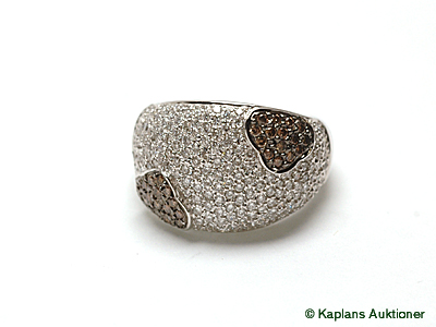 RING, 18K white gold, brilliant-cut diamonds (ca W/SI) and brown brilliant-cut diamonds tot approx 1,53ct, ringsize 17 1/4mm, 9,3g