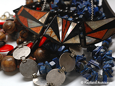 VARIOUS PCS OF JEWELLERY, 5 necklace, lapis lazuli, coral, wooden m. m