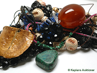 VARIOUS PCS OF JEWELLERY, 8 necklace, lapis lazuli, pressad amber m.m