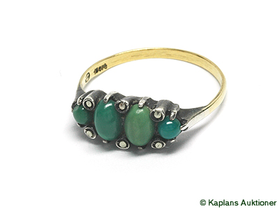 RING, 18K gold/silver with green stones and marcasites, weight 2,2 g, ringsize 17 1/4