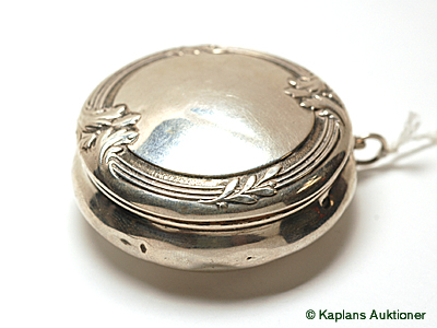 1 pendant/powder-compact, engraved 28.12.16, silver. weight 12,8g