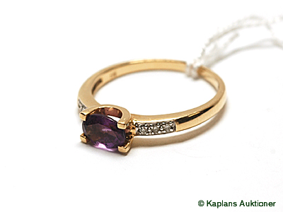 1 ring with purple stone & dia approx 6x0,01ct, stl:18 1/2, 18K. weight 3,2g