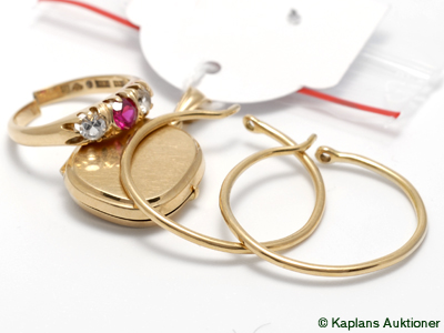 Partiguld, Locket, Ring with stones, 1 pair Earrings 18K trasigt
