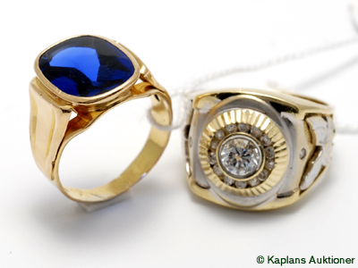 Rings, 2 Signet-rings with stones 18K SIZE 19, 19 3/4 21,2 g
