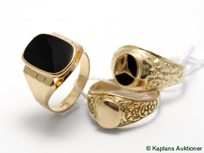 Rings, 2 Signet-rings with stone 14K SIZE 18 3/4, 19 3/4, Signet-ring SIZE 19 1/2 14,6 g