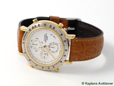 CITIZEN, chronograph, men´s wristwatch, bicolour, quartz, mineral crystal, timer, alarm, leatherstrap, approx 1995.