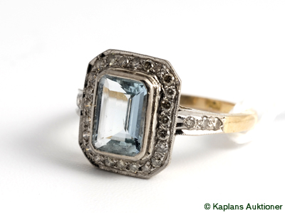 Ring, with blue stone and diamonds 30xca0,01ct Ø18 18K 4,0g
