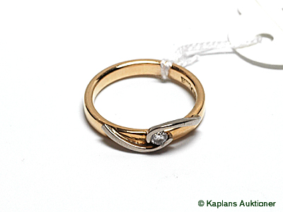 1 ring with dia approx 1x0,08ct, stl: 17, 18K. weight 4,5g