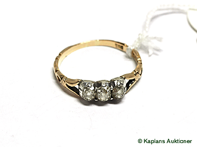 1 ring with diamonds approx 0,40ct (3st, gammal slipning, 1 with litet hack), stl:17 1/2, 18K. weight 2,1g