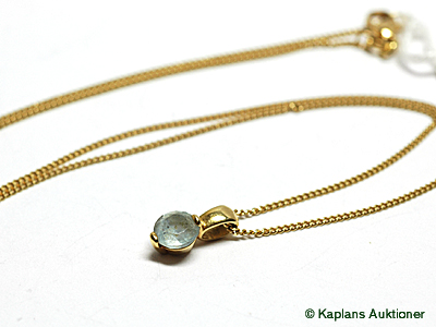 1 chain "curb" 45cm, 1 pendant with light blue stone, 18K. weight 4g