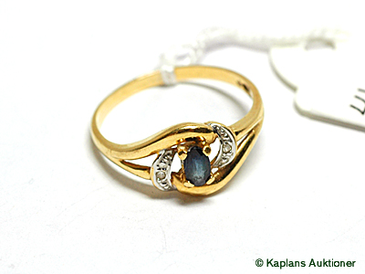 1 ring with blue stone & diamonds approx 0,01ct, stl:18 1/4, 18K. weight 2,1g