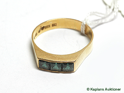 1 ring with green stones, stl:19 1/4, 18K. weight 3,3g