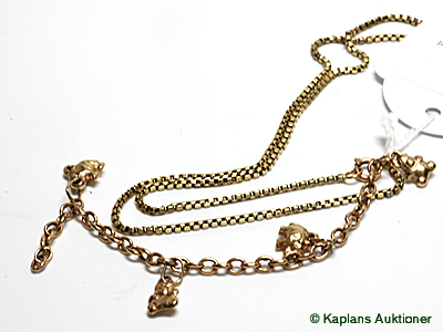Necklace, Box-chain 33,5cm. bit by Bracelet with charms, 14K 6,7g