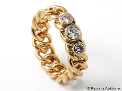 RING, 18K gold with 3 brilliant-cut diamonds approx 0,38 ctw TW/VS-SI, weight 7 g, ringsize 16