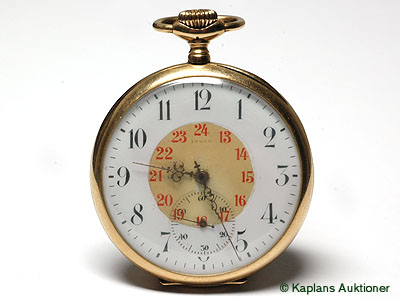 INVAR, pocketwatch, 49 mm, 14K gold, lever escapment, dents, engraving, monogram, approx 1922, case.