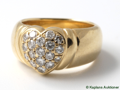 RING, 18K gold, heart with 18 brilliant-cut diamonds 0,52 ctw approx TW/VVS, weight 12,4 g, ringsize 15