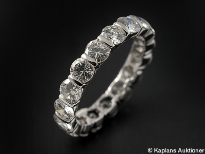 ETERNITYRING, (all the way around) 18K white gold, 17 brilliant-cut diamonds approx 3,74 ctw, approx W-TCr/VS (worn facet edges), ringsize 17 3/4, weight 3,7 g.