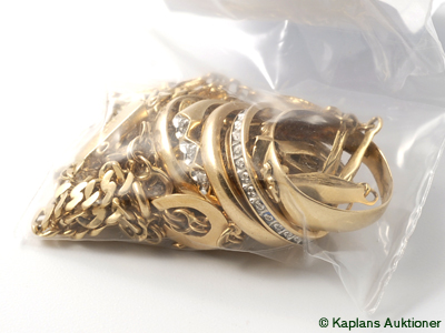 Lot of Gold, imperfect and engraved pcs of jewellery, 18K 36,3g, innehåller stones and small Diamonds