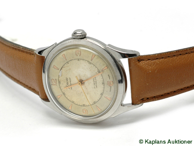 TIMOR, men´s wristwatch, Case no. 73409, steel, manual wind, plastic crystal, damaged dial, leatherstrap, approx 1950.