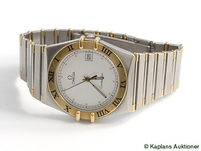 OMEGA, Constellation, Cal , serial no. , Ref no. , men´s wristwatch, steel/gold, quartz, sapphire crystal, date, integrated bracelet (half bar), folding clasp, Ref no. 1448/431, approx 1990.