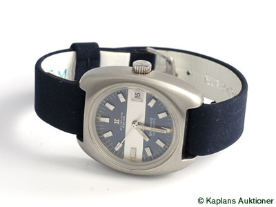 SVALAN EDOX, Bluebird, no. 26493-5, ladie´s wristwatch, steel, self-winding, mineral crystal, date, leatherstrap, original buckle, approx 1970.