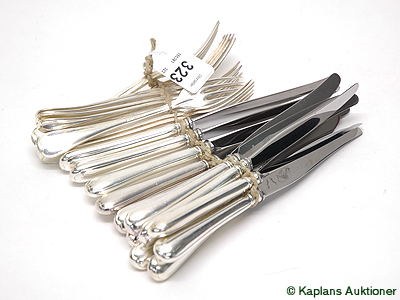 12 Smörgåsgafflar, 12 smörgåsknivar, mod: Gammal Swedish in silver. weight 711,2g